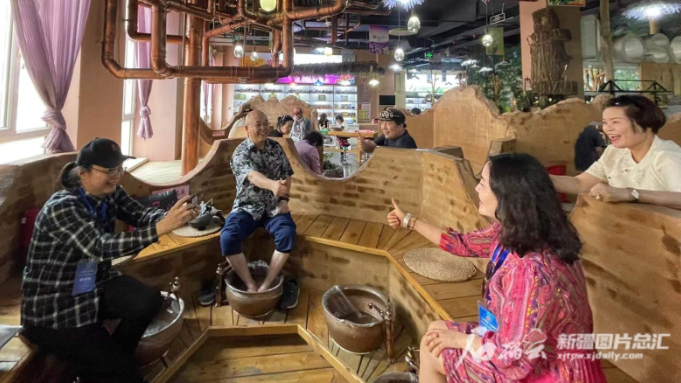 一场舒适的体验结束后,采访团成员又来到了喀赞其民俗旅游区,坐着“马的”,吃着拥有上百年历史名号的冰淇淋,向路过的居民打招呼,亲手打个馕,摘路边的桑葚、樱桃,与居民们一起载歌载舞……“在这里生活的人们,他们的歌舞游宴、日常百态就像不断散发出迷人光彩的动态风景。”菲律宾亚太通讯社社长刘继明说,在这里没有隔阂,只有美好的感觉,就像一首首动人的歌曲,让每个人都沉浸其中去享受幸福。