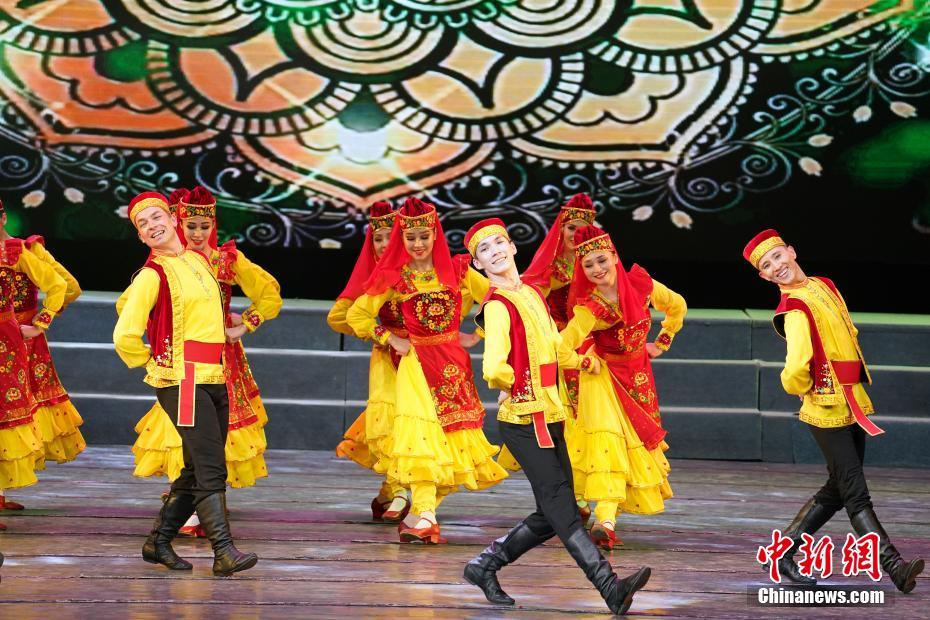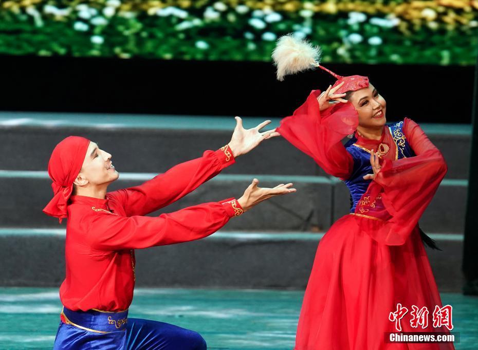 7月22日晚,在乌鲁木齐举行的第六届中国新疆国际民族舞蹈节上,来自哈萨克斯坦萨尔塔纳国家舞蹈团的演员表演歌舞晚会《富饶的家乡》。晚会以舞蹈、歌曲、乐器演奏等节目展示了哈萨克斯坦多彩瑰丽的文化底蕴。(中新社记者 毛建军 摄)