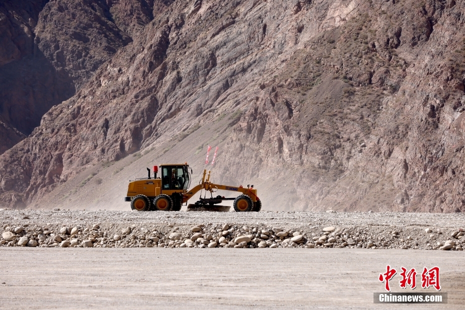 9月5日,新疆大石峡水利枢纽工程正在加紧施工。中新社记者 张宇 摄