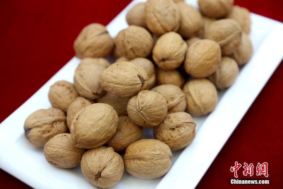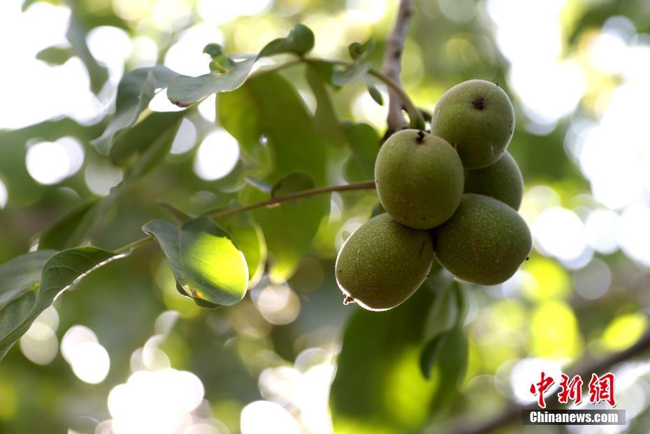 9月6日,新疆阿克苏温宿县柯柯牙镇国家级核桃示范基地内成熟的核桃。(中新社记者 张宇 摄)