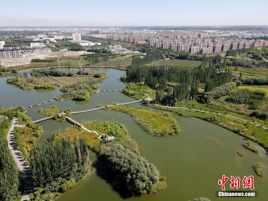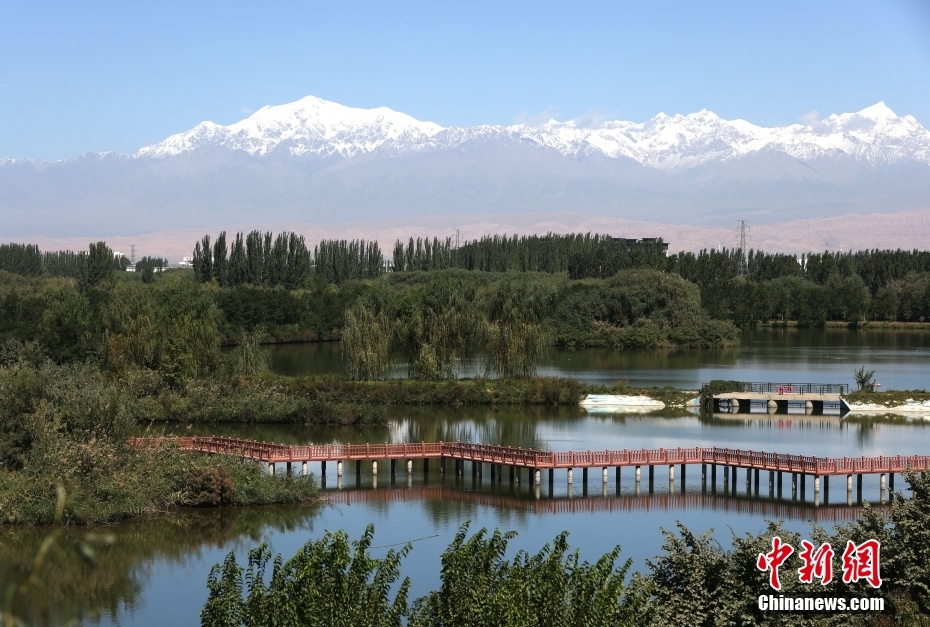 9月6日,新疆阿克苏国家湿地公园。湿地公园位于阿克苏市西北侧,分布着大小湖泊22个,多种国家重点保护动植物,各种绿化植被达140余种。(中新社记者 张宇 摄)