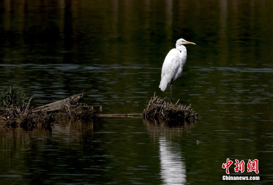 9月6日,新疆阿克苏国家湿地公园内栖息的白鹭。(中新社记者 张宇 摄)