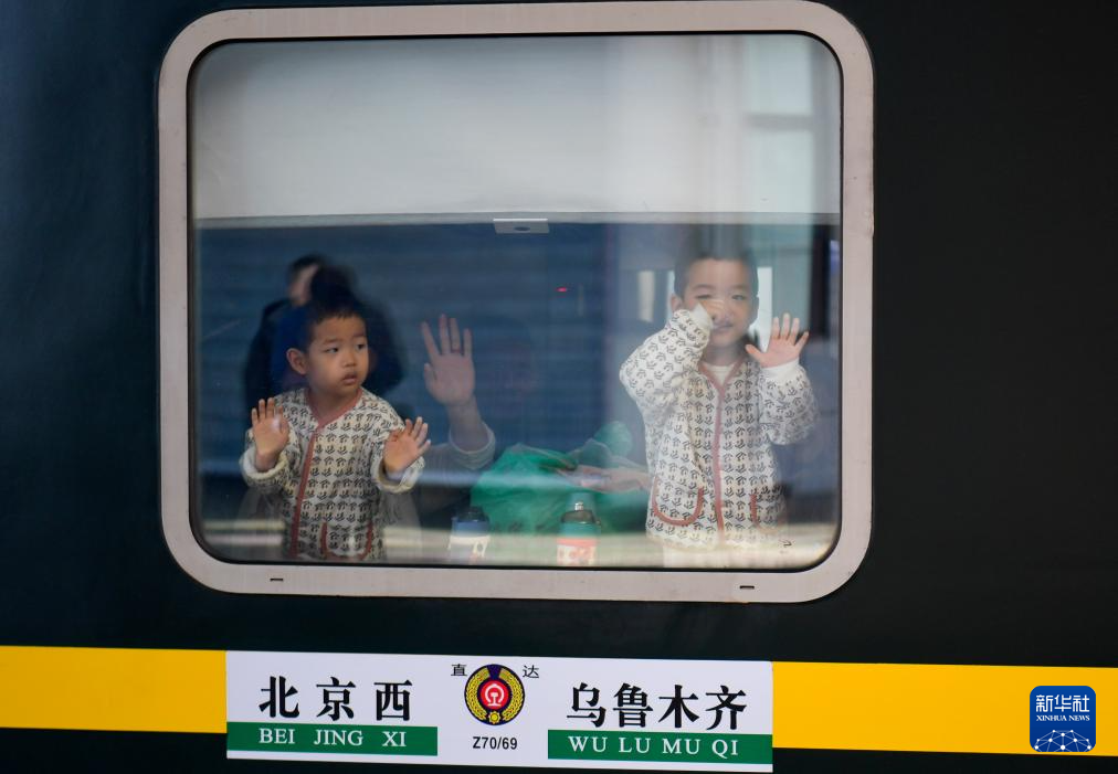 1月11日,两名小乘客在Z70次列车上等待发车时向窗外张望。