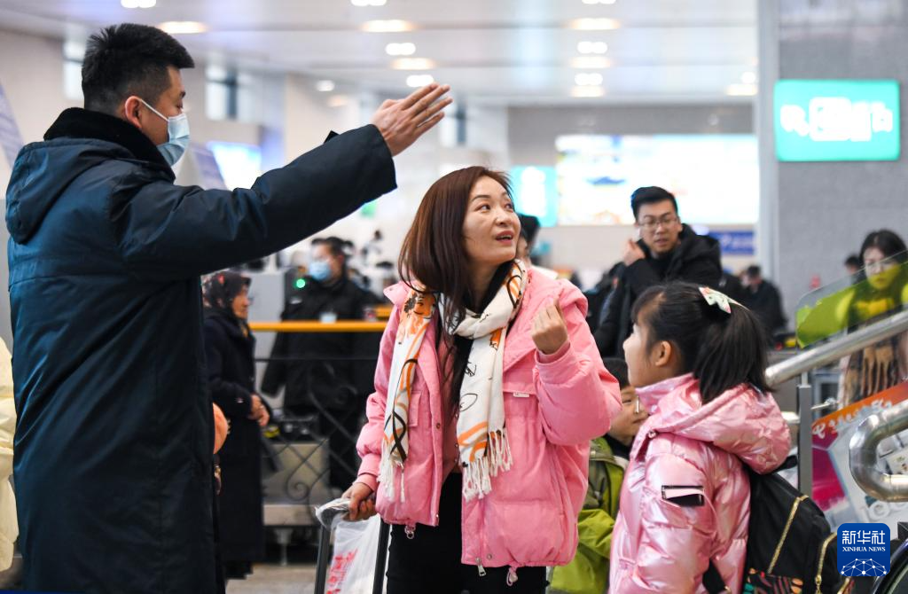 1月17日,在乌鲁木齐站,铁路工作人员协助乘客验票进站。
