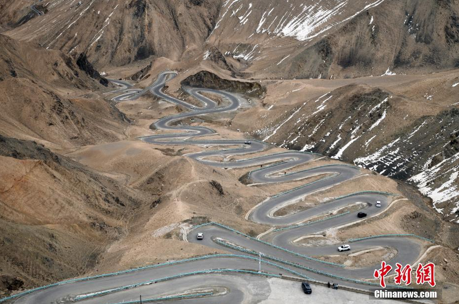 3月21日,因冬季积雪结冰而禁止通行的新疆盘龙古道恢复通车,车辆驶入这条“网红公路”。盘龙古道位于新疆塔什库尔干塔吉克自治县,仅30公里的山路就有600多个S形弯、U形弯,海拔从3000米到4100米,落差达1100米。(中新社记者 孙亭文 摄)