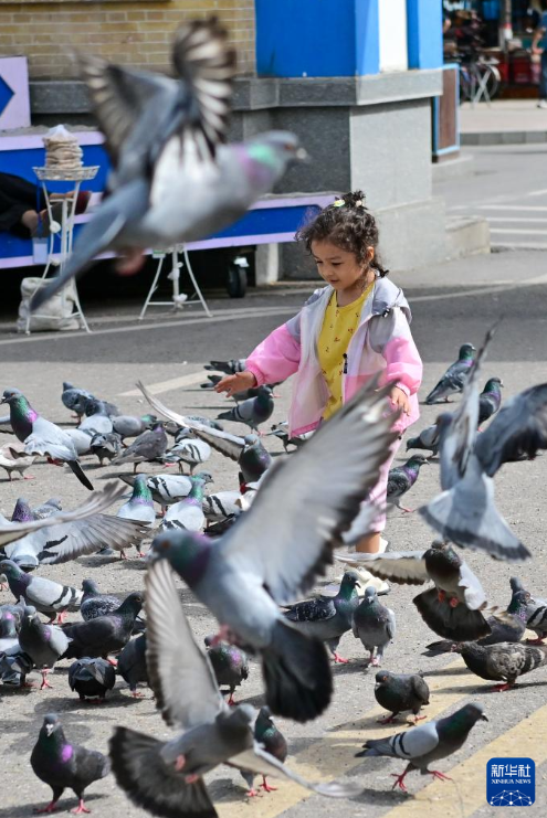一名小朋友在伊犁哈萨克自治州伊宁市喀赞其民俗旅游区游玩(5月11日摄)。新华社记者 丁磊 摄