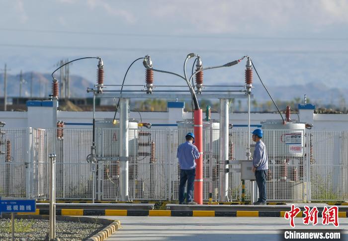 8月26日,新疆阿勒泰地区吉木乃县边境经济合作区源网荷储一体化项目,工作人员在220千伏总降站进行巡查,保障设备正常运行。该项目总投资约35亿元人民币,建设了390兆瓦风电及10兆瓦光伏项目,配套建设一座220千伏总降站、一座220千伏风电场汇集站,年发电量11.8亿千瓦。阿勒泰地区是新疆唯一同时具有丰富太阳能、风能、水能资源的地区,也是新疆重要的清洁能源储备地和待开发区,清洁能源资源总量超过5.26亿千瓦。