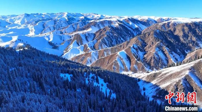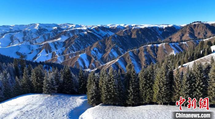 近日,一场大雪过后,位于新疆特克斯县的阿克塔斯草原美景醉人。整个大地被白雪覆盖,沟岭与云杉交错,树木枝头挂满雪花。蓝天下,群山连绵更显巍峨壮观。漫步其间,恍若置身冰雪王国。塔依尔 摄