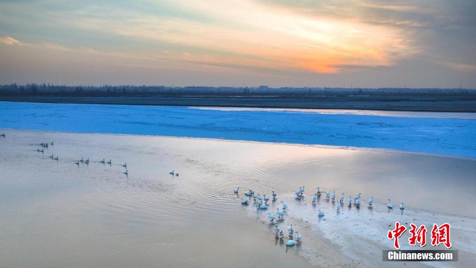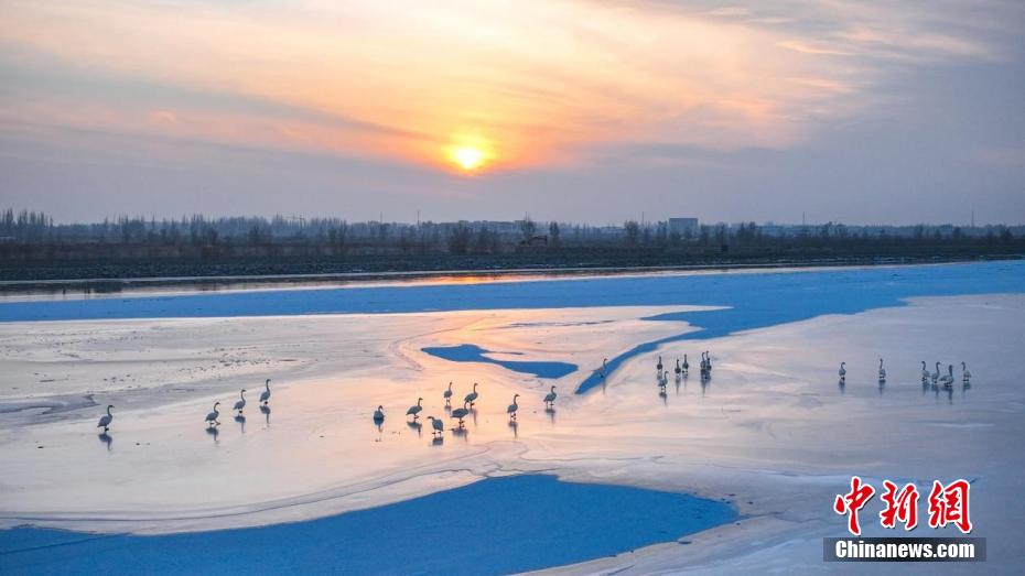 时值冬日,在新疆阿拉尔市穿城而过的塔里木河河面上,白天鹅、赤麻鸭等成群结队,栖息越冬,构成一幅美丽的生态画卷。近年来,阿拉尔市推进生态保护与修复工程,对塔里木河流域实施全方位、立体化综合整治行动,为众多野生动物营造了理想的栖息家园。(施亚军 摄)