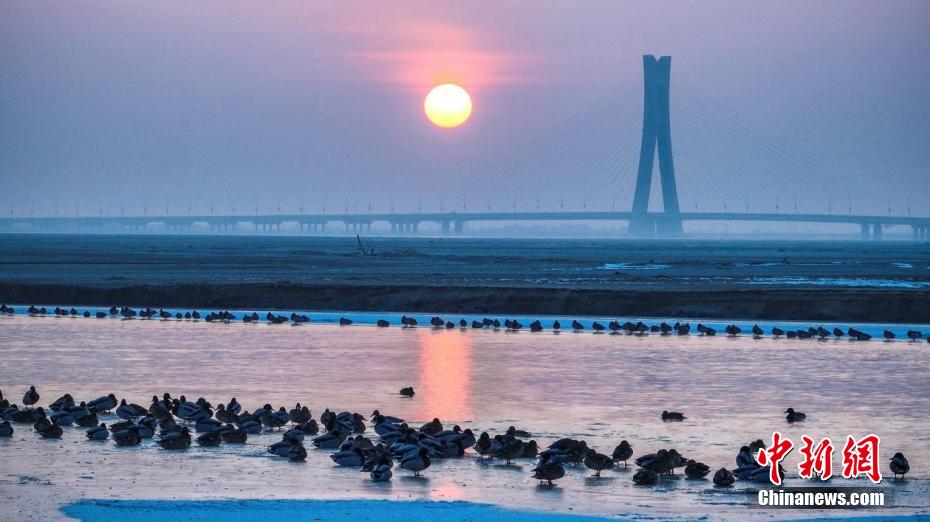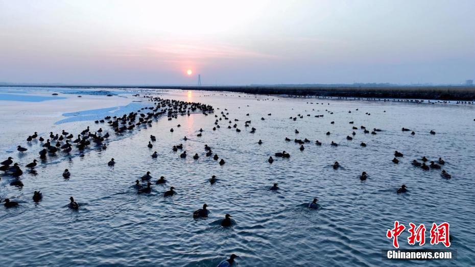 时值冬日,在新疆阿拉尔市穿城而过的塔里木河河面上,白天鹅、赤麻鸭等成群结队,栖息越冬,构成一幅美丽的生态画卷。近年来,阿拉尔市推进生态保护与修复工程,对塔里木河流域实施全方位、立体化综合整治行动,为众多野生动物营造了理想的栖息家园。(彭宇轩 摄)