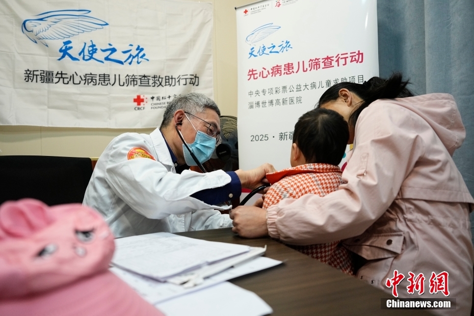4月9日,中国红十字基金会“天使之旅”2025新疆先心病患儿筛查救助行动走进新疆博尔塔拉蒙古自治州。本站已筛查人数29人,截至目前,筛查人数总计213人,筛查总行程近1000公里。图为专家为儿童进行筛查。(中新社记者 赵文宇 摄)