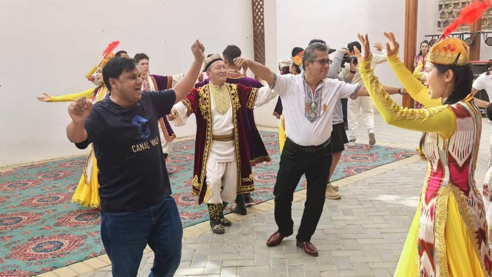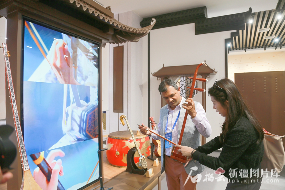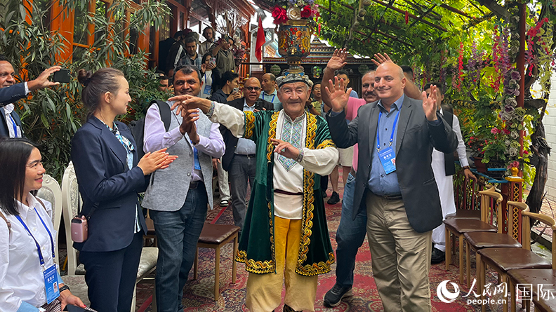 中国新疆维吾尔木卡姆是集歌、舞、乐于一体的大型综合艺术形式,2005年入选联合国教科文组织“人类非物质文化遗产代表作”名录。维吾尔木卡姆艺术是中华优秀传统文化的重要组成部分,也是反映维吾尔族人民生活和社会风貌的百科全书。载歌载舞是维吾尔木卡姆最重要的特色,被誉为“中华瑰宝,丝路明珠”。在新疆艺术剧院木卡姆艺术团,中外嘉宾近距离观看了十二木卡姆、刀郎木卡姆等艺术表演。悠扬的乐曲、欢歌热舞……大家被其独特的艺术魅力所感染,了解到了中国政府保护传承发展各民族非物质文化遗产所做的努力,取得的成效。