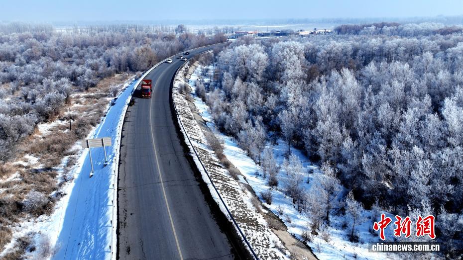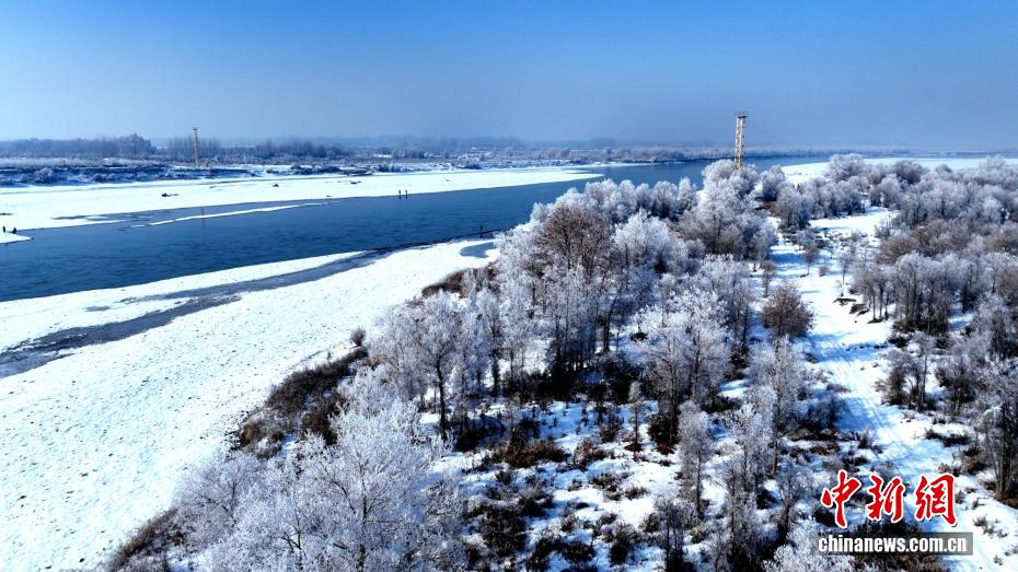 12月24日,新疆喀什地区莎车县叶尔羌河畔出现雾凇美景。(韩亚伟 摄)