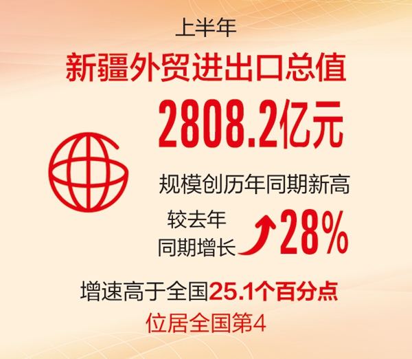 • 上半年新疆外贸进出口总值同比增长28%