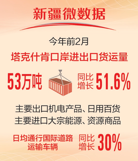 塔克什肯口岸: 前2月进出口货运量同比增长51.6%