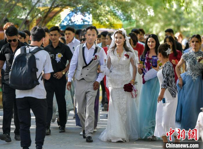 新疆南部公园里的维吾尔族婚礼