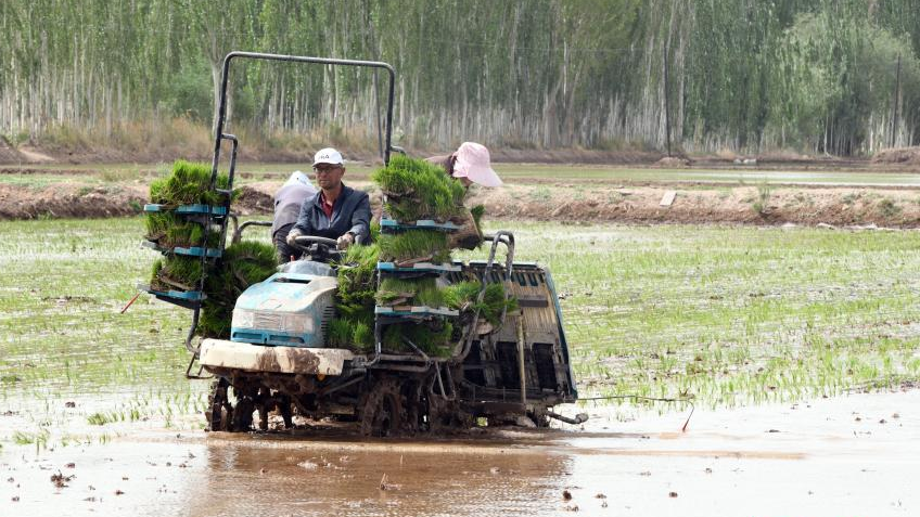 新疆喀什市万亩“海水稻”插秧工作全面展开