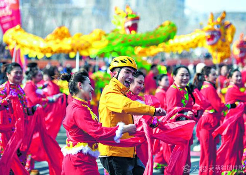 新疆昌吉州:非遗社火闹元宵 机器人参与演出