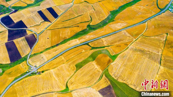 新疆一万泉5A级旅游景区内旱地小麦进入收获期