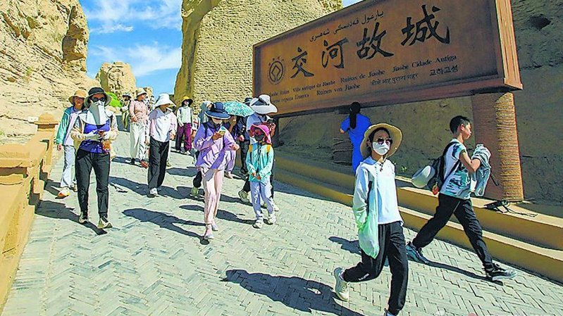 高温天气不减游客热情 新疆吐鲁番多部门保障游客出游