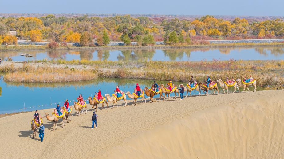 奋进的新疆 我们的“十四五”|大漠胡杨映驼影