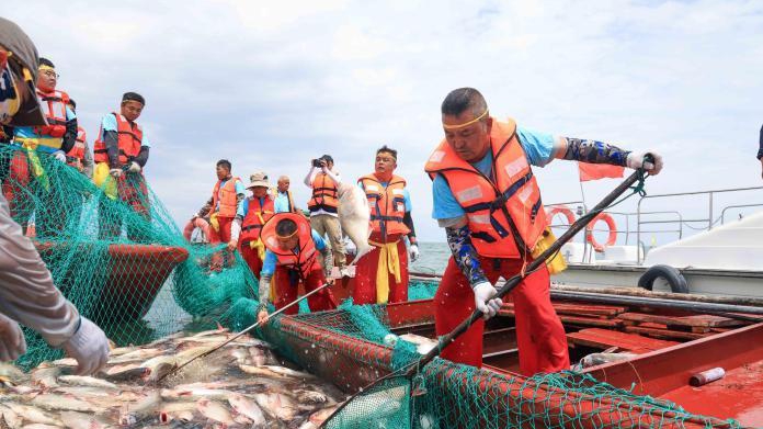 新疆博斯腾湖迎“开湖季” 巨网捕鱼庆丰收