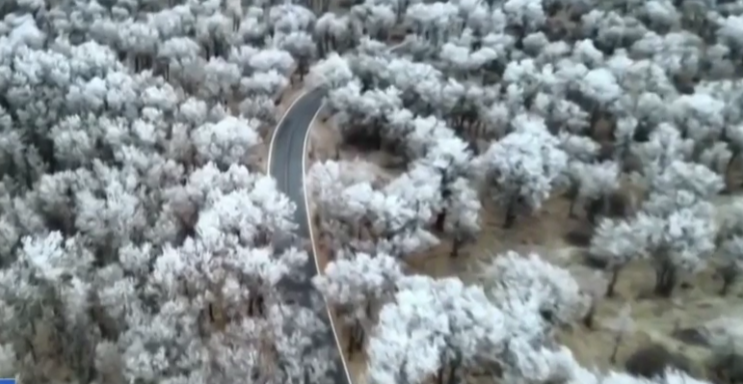新疆轮台:百万亩胡杨林现雾凇景观