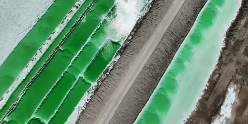 新疆罗布泊:钾盐晒场现“荒漠翡翠”美景