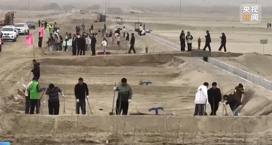 新疆:春季植树 为塔克拉玛干沙漠添新绿